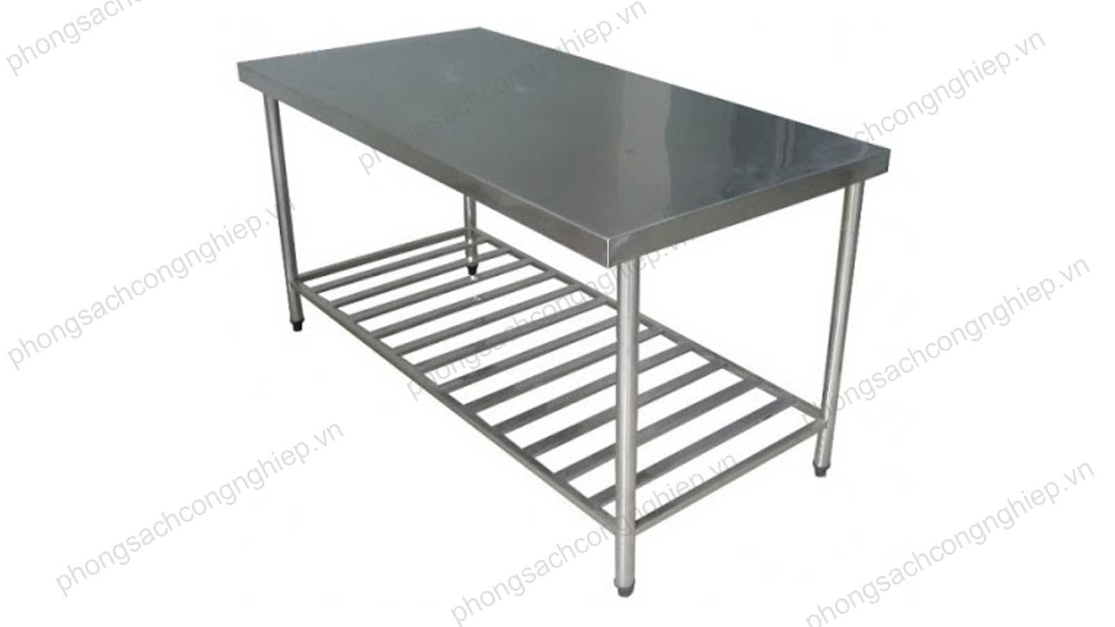 Bàn inox hai tầng model B2T-01 được sử dụng trong các ngành chế biến thực phẩm, dược phẩm, bệnh viện và các ngành công nghiệp khác. Bàn thường được dùng làm bàn làm việc, bàn sản xuất, sơ chế và chế biến thực phẩm – thủy sản.